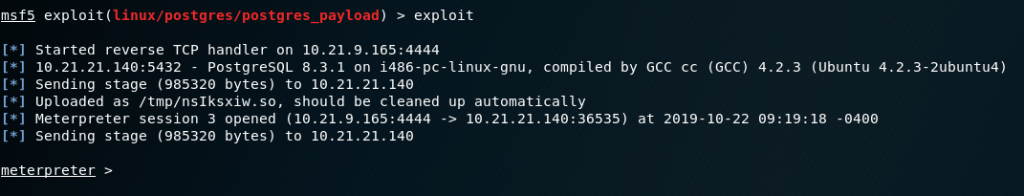 1 – Msfconsole üzernden PostgreSQL zafiyeti için arama yapıyoruz. “ Exploit/Linux/postgres/postgres_payload” ı seçeceğiz.