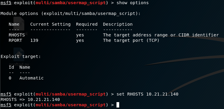 3 – “show options“ ile bizden istenen bilgileri görüntülüyoruz. Sonra RHOSTS’u yani hedef cihazın IP adresini belirliyoruz.