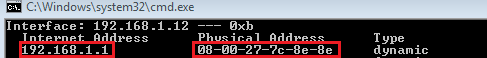Step 3 : Kurban cihazda ARP tablomuzu görüntüleyelim ve gateway’in MAC adresine bakalım.