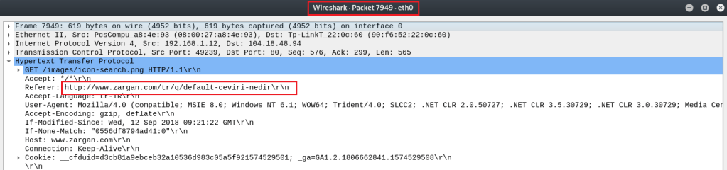 Step 3 : Saldırgan açtığı bir pakette, kurbanın hangi siteye-URL’e gitmiş olduğunu görebiliyor.