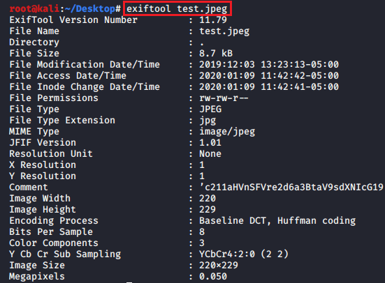 ✓ Exiftool : İncelenecek olan dosyanın metadata’sını görüntüleyebildiğimiz tool’dur.