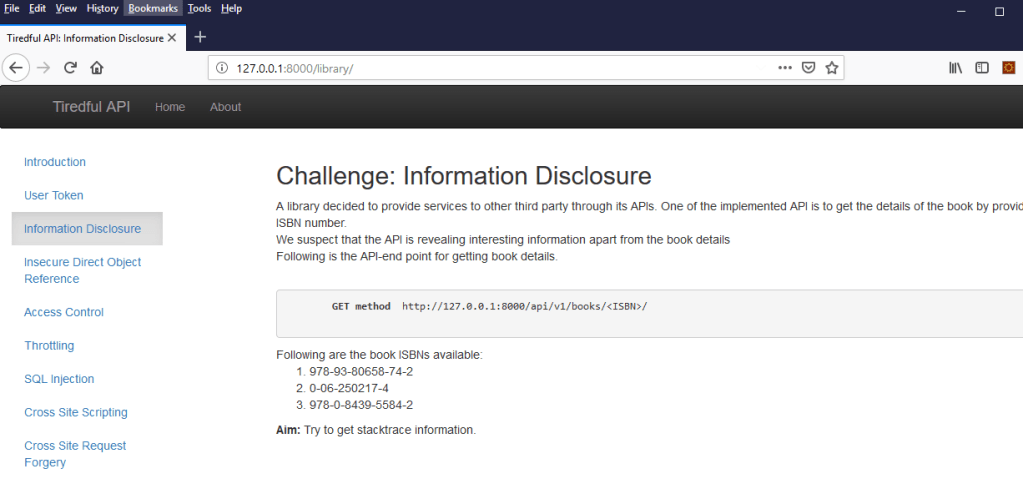 Tiredful API, içerisinde kasıtlı olarak zafiyetler barındıran bir web uygulamasıdır. Ücretsiz olarak bu web uygulamasını kurduktan sonra örnek senaryolar ile içerisindeki zafiyetleri sömürerek kendinizi geliştirebilirsiniz.