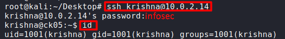 Step 14 : Krishna kullanıcısının bilgileri ile bağlantı yapmayı denedik ve kurban makinesine başarılı şekilde bağlantı yapabildik.