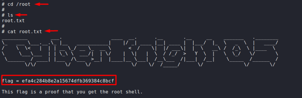 Step 22 : Ve sistem üzerinde root haklarına sahip olduk. Flag’imiz de burada (:
