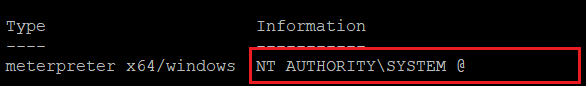 Bingo! Zafiyeti sömürdükten sonra bağlantı bize Windows üzerinde en yüksek haklara sahip olan “NT AUTHORITY\ System” hakları ile geliyor. Yani bu adımdan sonra bir hak yükseltme (privilege escalation) işlemi için uğraşmamıza gerek bile yok.