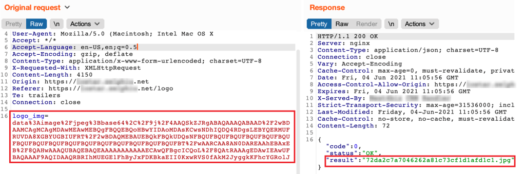 Web uygulaması içerisinde bulunan avatar yükleme fonksiyonunu test ederken sunucuya giden istekleri incelediğimde, avatar olarak yüklemek istenilen fotoğraf dosyasının Base64 ile encode edildikten sonra web sunucusuna iletildiğini ve web sunucusunun yüklenen bu fotoğrafı hangi URL’e yazdığını HTTP yanıtlarında gösterdiğini gözlemledim.